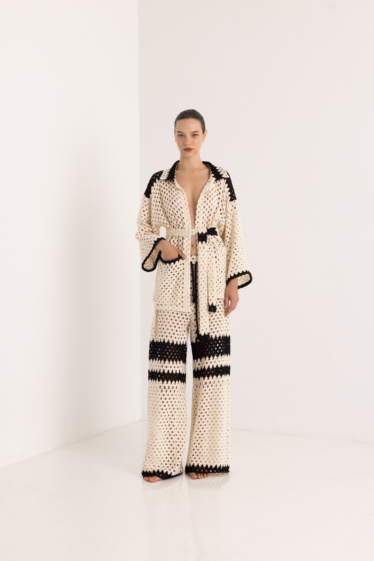 The Yucatán pants designed with an elasticated waist for all-day comfort and ease of wear. Featuring a fluid, straight-leg silhouette with contrast detailing, they transition effortlessly from casual to refined styling. Pair with the Oaxaca Cardigan or Acapulco Poncho for a cohesive summer look.